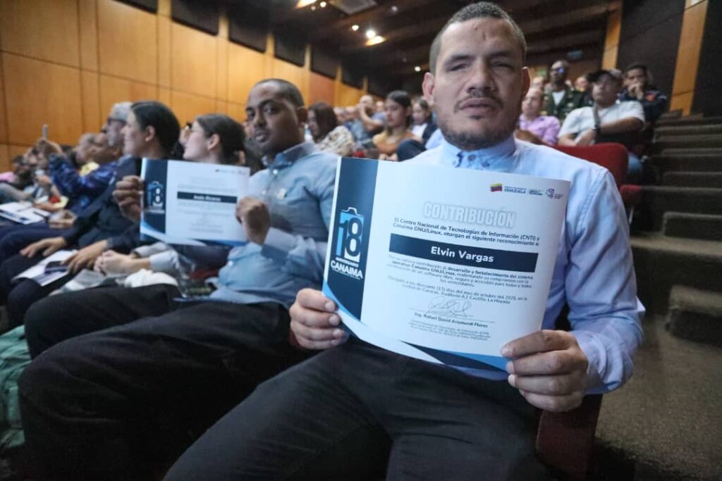 En conmemoración del 18º aniversario del proyecto Canaima GNU/Linux, el Centro Nacional de Tecnologías de Información (CNTI) organizó actividades que destacaron tanto el legado como la innovación constante de este sistema operativo libre, desarrollado por talento venezolano. Durante los días jueves 16 y viernes 17 de octubre, en la Plaza de los Pueblos y Saberes del Ministerio del Poder Popular para Ciencia y Tecnología (Mincyt), se realizaron mesas de instalación, demostraciones en vivo y un foro abierto que permitió dialogar sobre los avances, desafíos y el futuro colaborativo del ecosistema Canaima, fortaleciendo la comunidad y el compromiso con el proyecto.