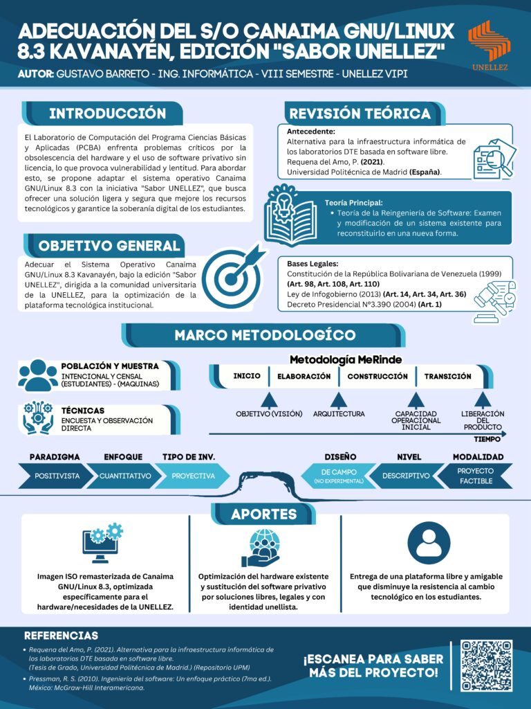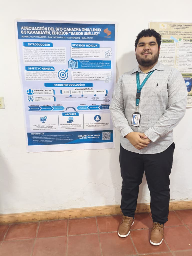 Entre las propuestas presentadas destacó el proyecto desarrollado por el estudiante Gustavo Barreto, orientado a la creación de la edición “Sabor UNELLEZ”, una adaptación académica de Canaima GNU/Linux 8.3 Kavanayén, concebida para responder a las necesidades tecnológicas reales de la comunidad universitaria.